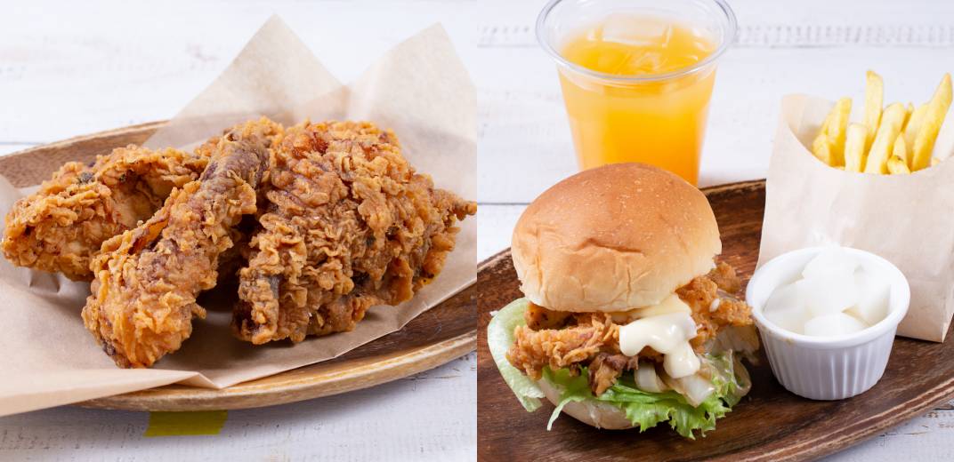 12種類のスパイスをブレンドした、サックサクの「オリジナルチキン(1ピース290円・税込)」は、1度目でじっくり火を通し、2度目にカラッと仕上がるよう揚げ方にもこだわっています。(画像左)