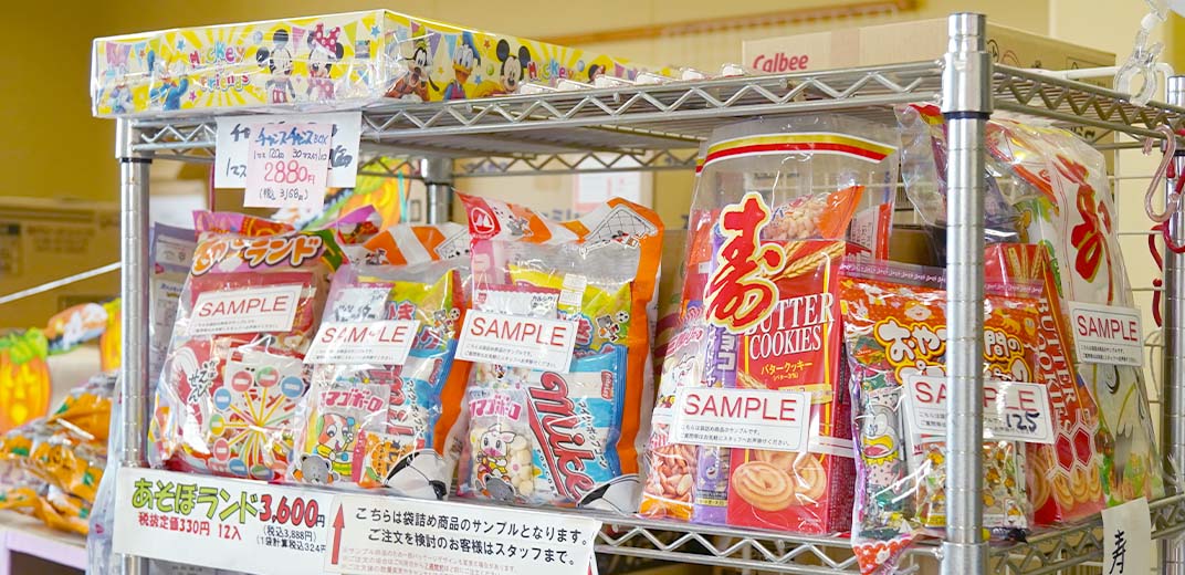 (株)山田商店には、菓子問屋ならではのサービスが…!それは、お菓子を袋に詰め合わせて購入することができる「袋詰め」サービスです。