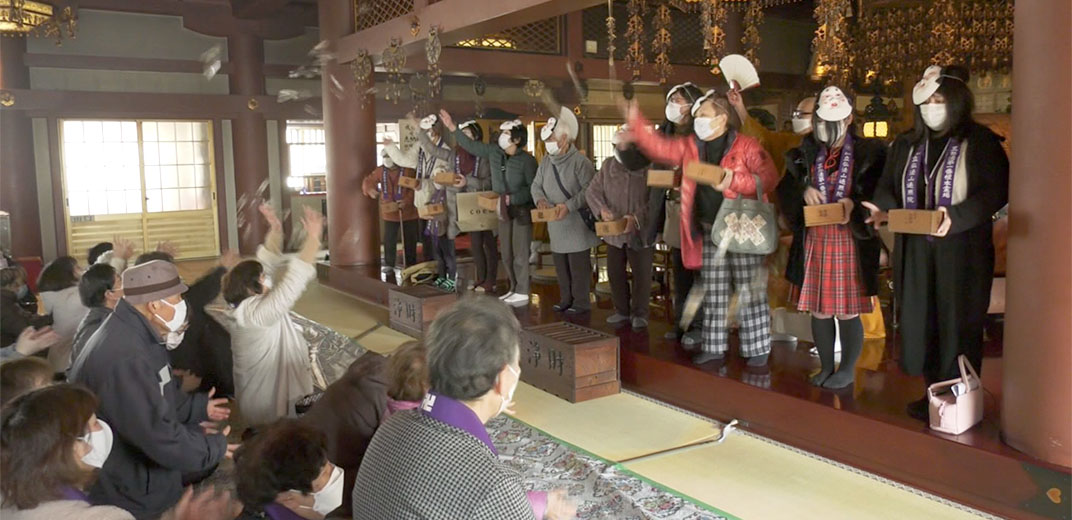 碧南市で「毘沙門さん」の愛称で親しまれている妙福寺では、2月3日に節分豆まきを開催。お坊さん10名ほどで豆まきを行います。