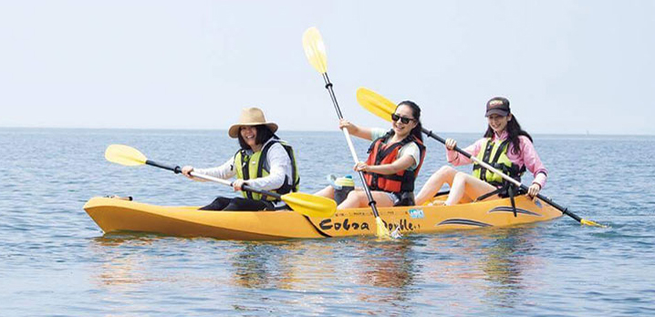 海を満喫するアクティビティとして広く知られているカヤック。2~3人で一台の船に乗り、パドルで漕いで海上を進みます。安定感のある乗り物に乗って、優雅に自然を感じたいという人におすすめのアクティビティです。
