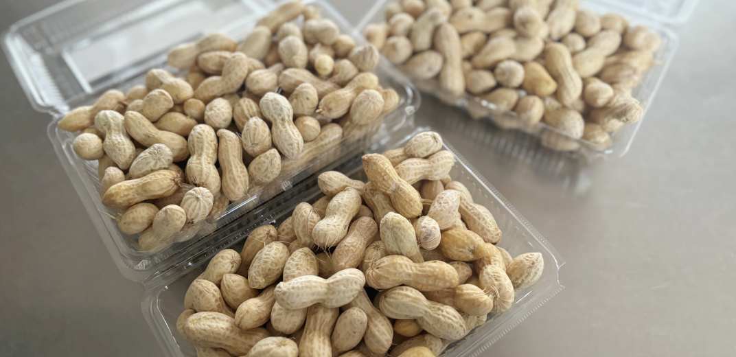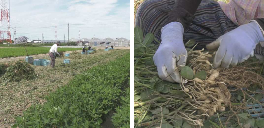 収穫された生ラッカセイは、一つずつ手作業でさやの部分をとりわけ、水洗いをして土を落とし、脱水機にかけたあとパック詰めされます。収穫作業は手作業というというところに驚きです。