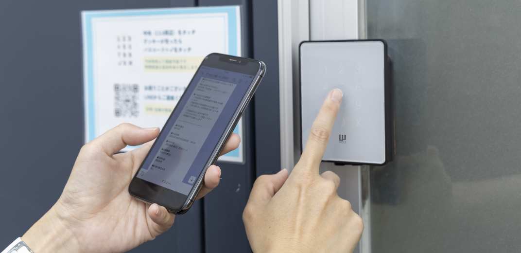 メッセージに暗証番号が書いてあるので、それを入り口に備え付けてあるタッチパネルに入力。暗証番号はその都度変わるので、セキュリティもバッチリです。