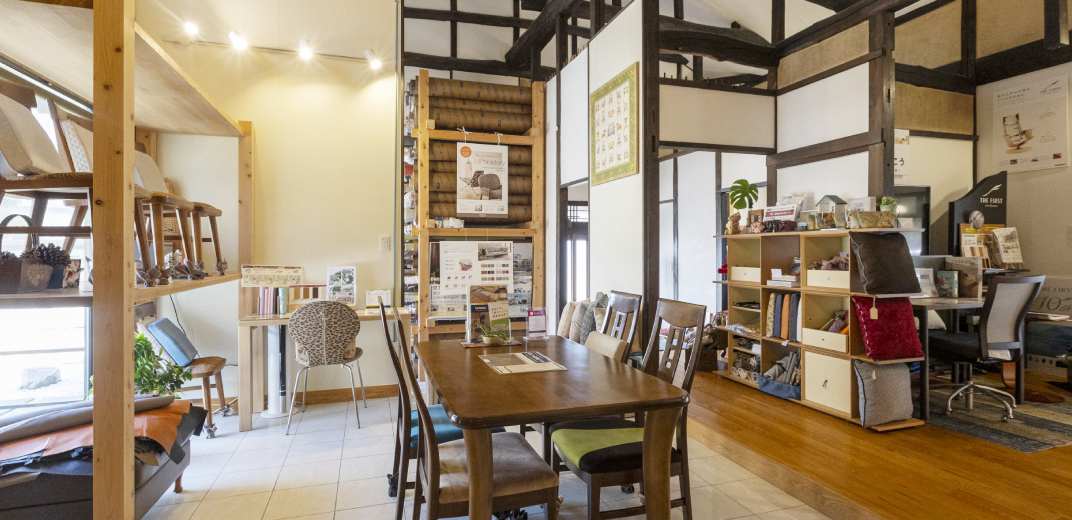 築65年の古民家を改装したショールームには生地やウレタンの見本が数千種類も並べられており、実物を見ながら打ち合わせができます。