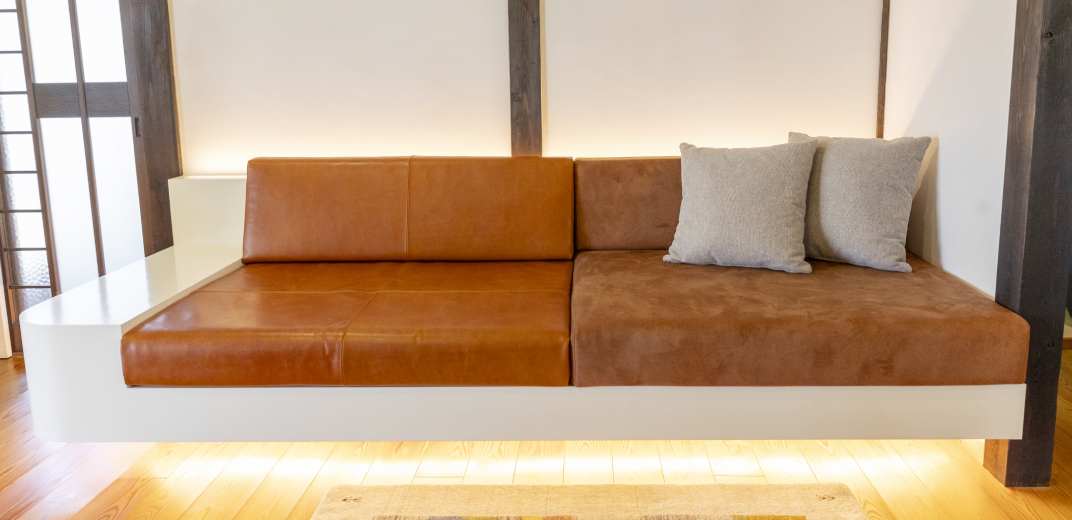 造作ソファとは、リビングなど空間に合わせてソファの土台を設計し、生地やクッションの硬さ、高さを選び作るもの。社長の杉浦さんは、「家の空間に合った自分好みのソファを作れることが1番の魅力です」と話します。既製品のソファは、場合によっては空間に合わず、圧迫感につながることがあるのだそう。そのため、ダイニングテーブルの高さに合わせたり、リビングのコーナー部分に備え付けたりといったオーダーのほか、最近ではおこもりスペース「ヌック」に採用する人も多いようです。