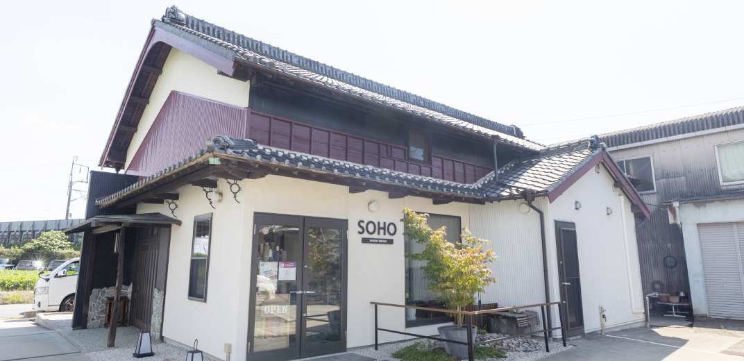 やってきたのは、名鉄知立駅から車で約8分の距離にある「SOHO」。「イスの着せかえ屋さん」と書かれた黒色の建物が目印で、同じ敷地内にショールームがあります。