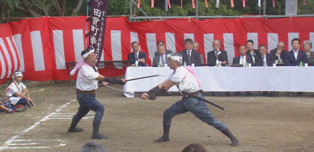 西尾市田貫町にある田貫神明社では、毎年10月第3日曜日に開催される祭礼で「棒の手」が奉納されます。参加者は棒や農具、太刀などの武器を打ち合わせ、二人一組で勇ましい演武を披露します。