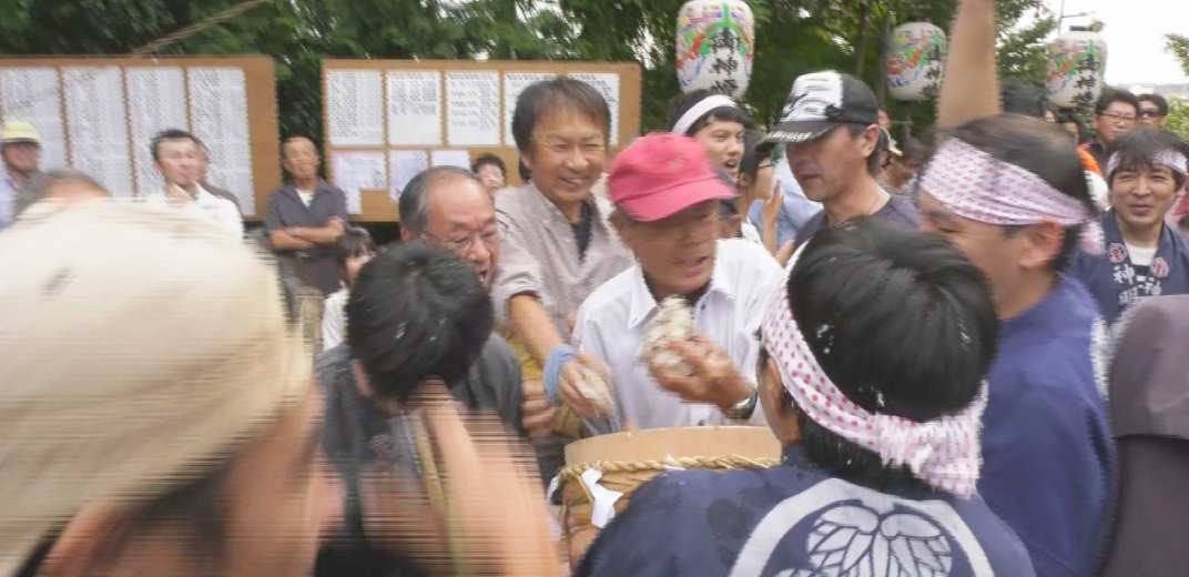 また、祭りの後半にはもち投げならぬ米投げが行われ、町内の子どもたちで賑わいます。