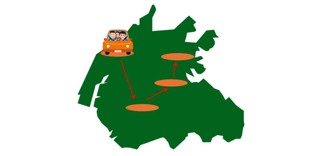 各祭の見どころ時間帯、車で順番に移動する場合の時間はこちら。