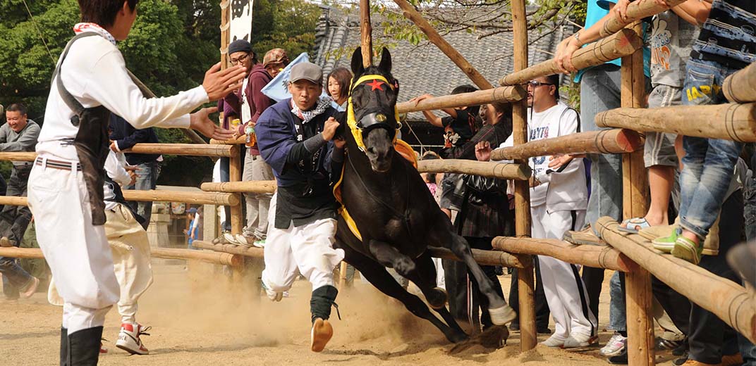 きらびやかな馬と騎人が見る人を楽しませる「馬駈神事」