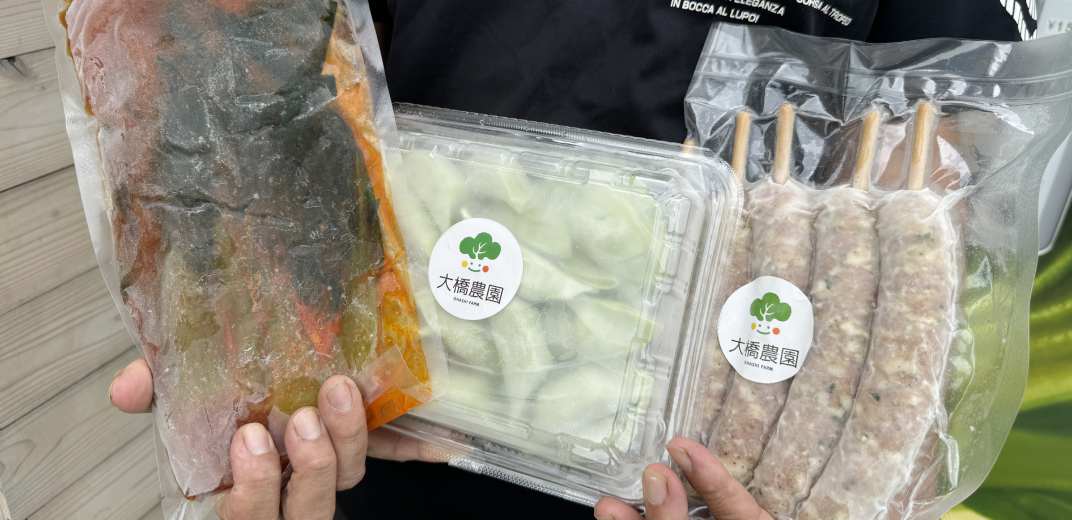 2024年10月取材時点では、3種類の商品がラインナップ。総重量の実に50%がチンゲン菜という「チンゲン菜餃子」(25個入1500円)、安城産のいちじくが香る「ベビーちんげん菜のキムチ」(280g 500円)、そして9月に発売したばかりの「チンゲン菜フランク」(5本入1500円)です。