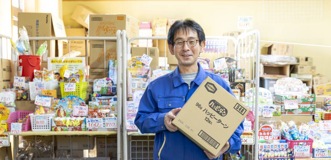 続いてやってきたのは愛知県碧南市にある山田商店。お菓子の詰合せのオーダーを受け付けており、嫁菓子はもちろん、祭りやクリスマス会などにも引っ張りだこです。卸売が主ですが、ケースごとであれば小売もOK。嫁菓子の相談は随時受け付けていて、今も月に数件は相談があるそうです。