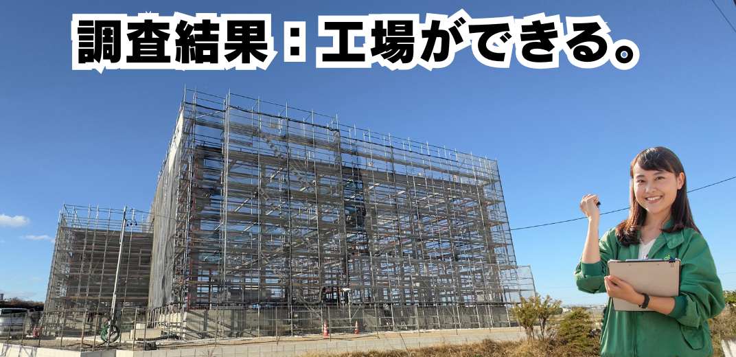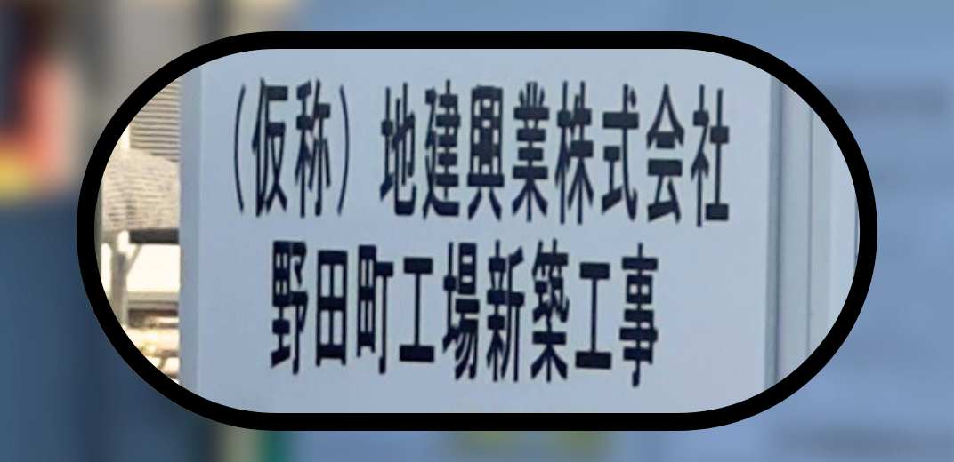 近づいてみると、掲示物を発見!「(仮称)地建興業株式会社 野田町工場新築工事」とありました。なるほど、この建物は「工場」だったんですね。