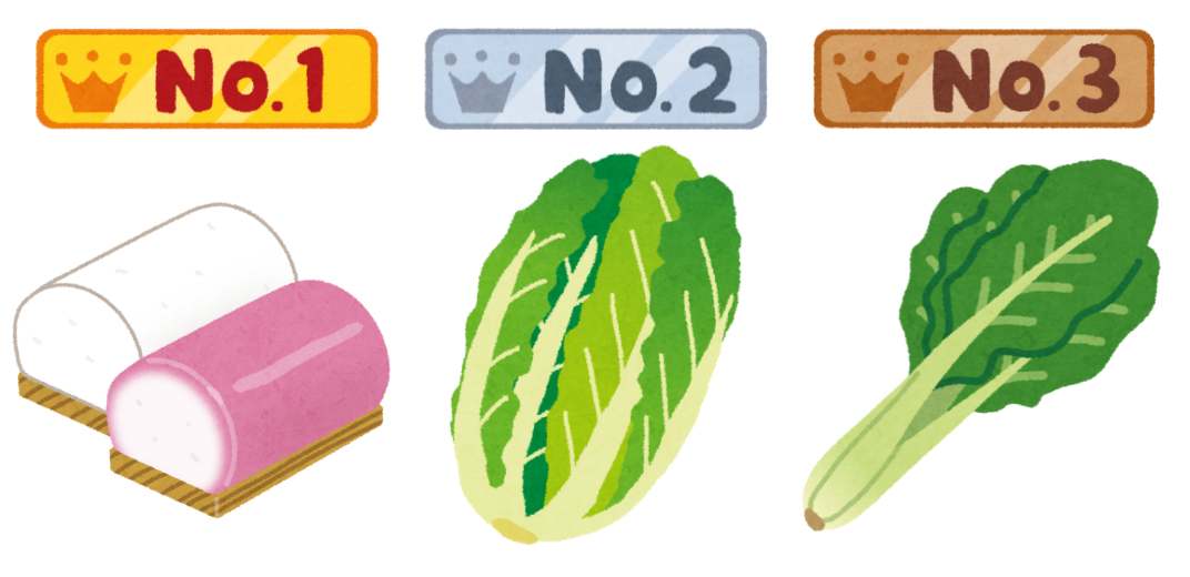1位「かまぼこ」、2位「白菜」、3位「もち菜」!