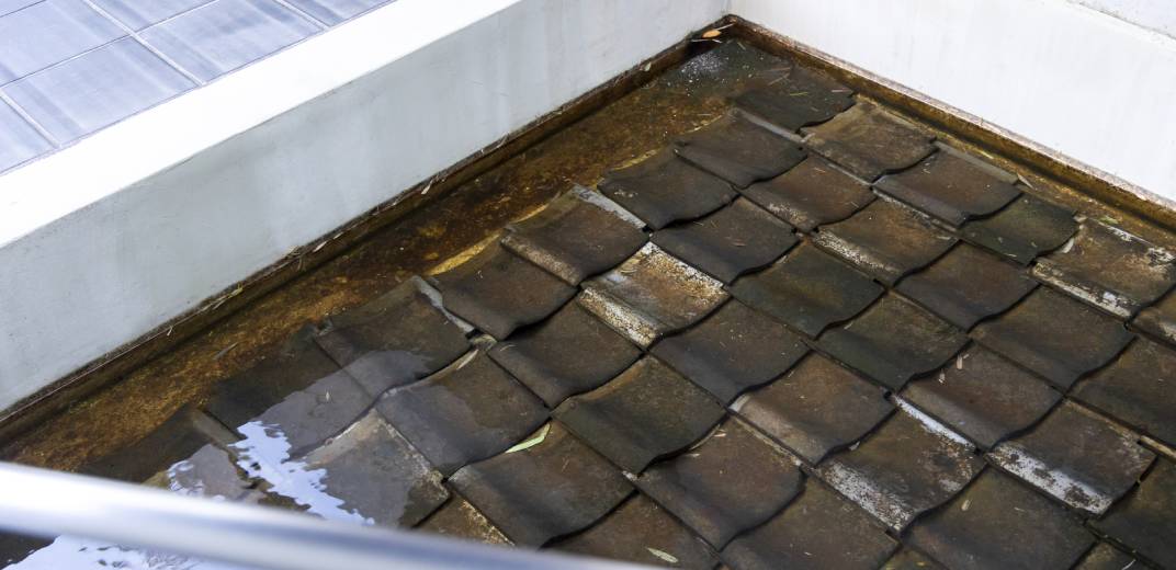 瞑想廻廊中庭の池の中をよーく見ると、何やら屋根瓦が…!地面なのに屋根があるという、不思議な感覚に襲われます。