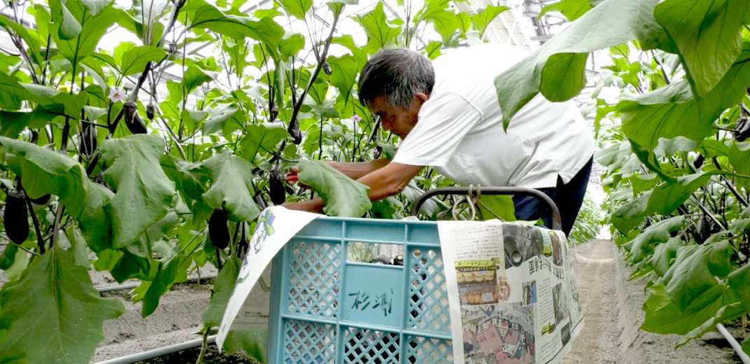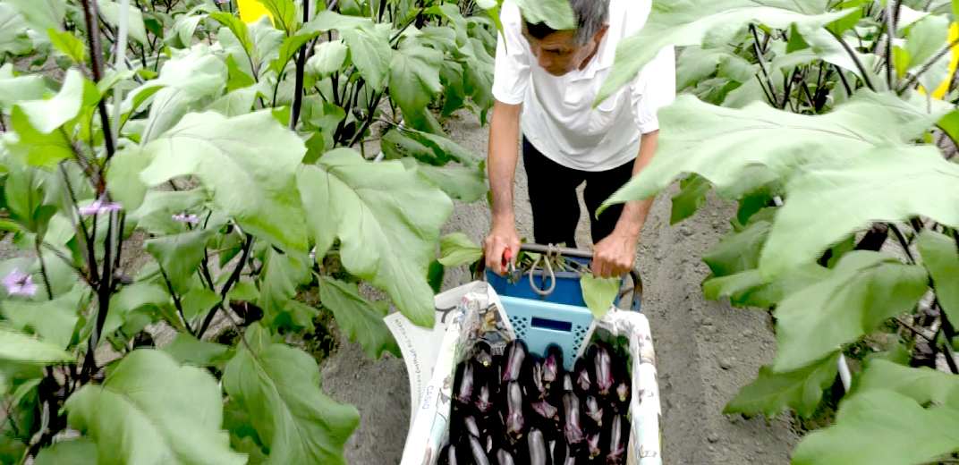 2024年10月18日、杉浦さんは、美しく育ったナスを一つひとつ丁寧に収穫していました。