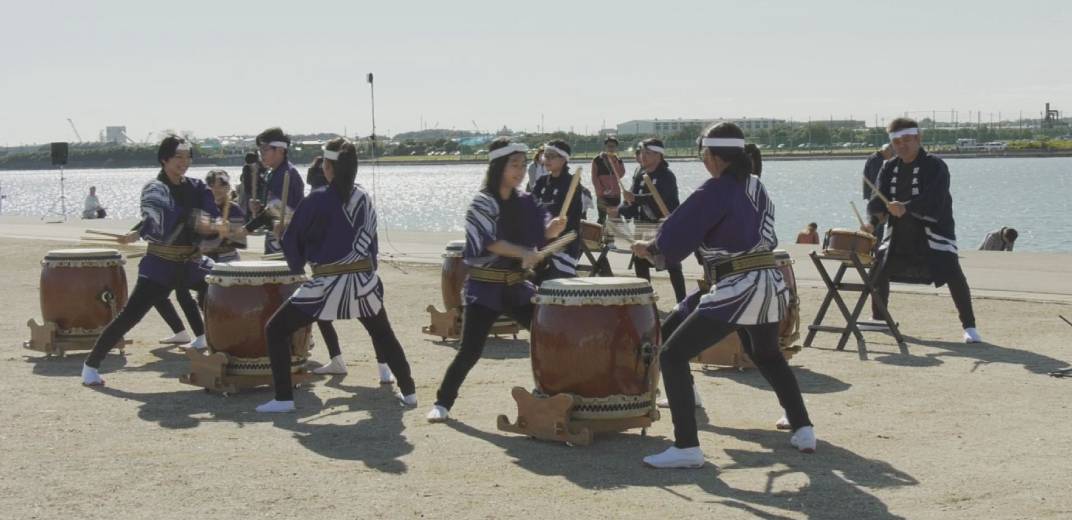 まつりでは、高浜市の和太鼓グループ夢童によるパフォーマンスのあと花嫁行列が出発し舟に向かっていきました。