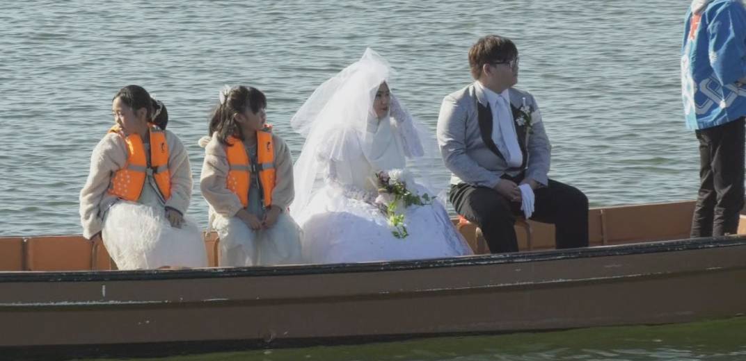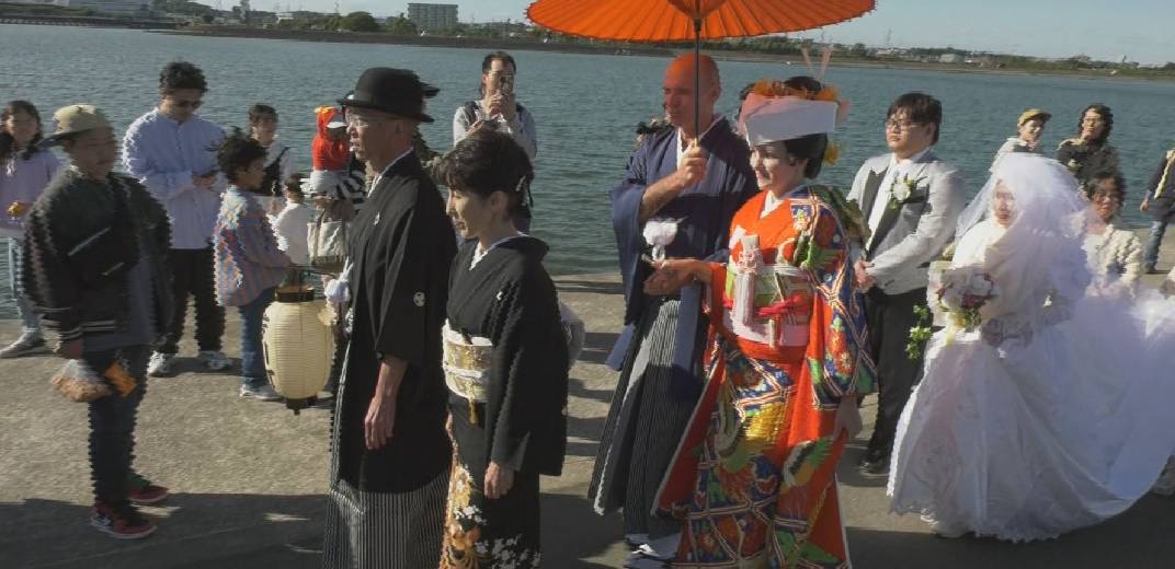 ウクライナ人の夫妻は日本の文化に興味があり、今回、「嫁入り舟」に乗船したということです。
