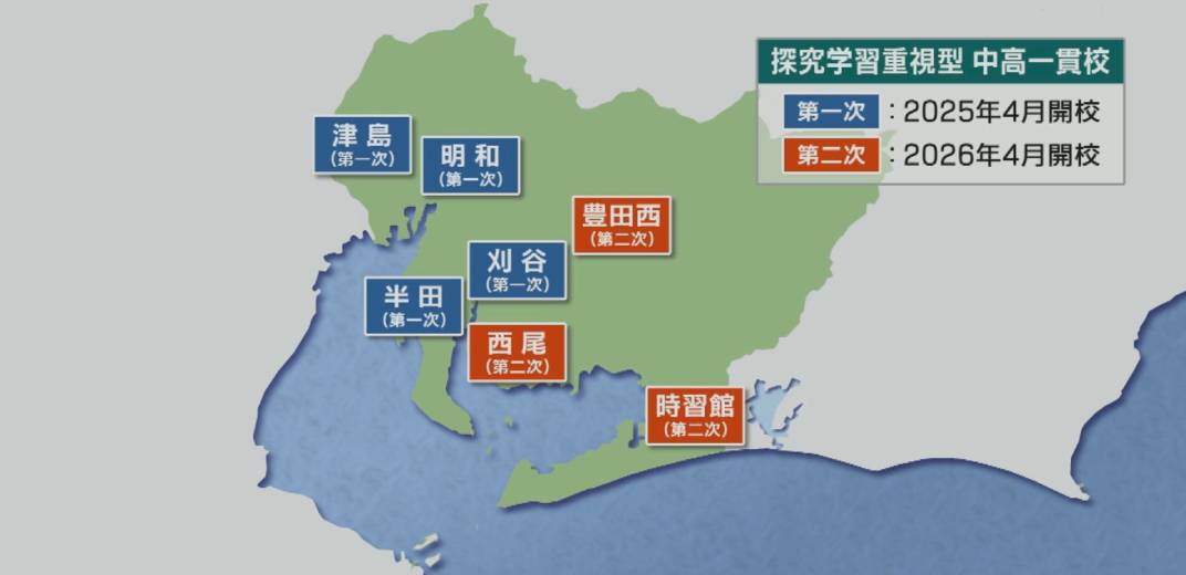 この地域からは、いわゆる進学校と呼ばれる刈谷高校や、西尾高校が、高校の3年間だけではなく、6年間、一貫した教育を受けられる探究学習重視型の中高一貫教育を導入します。