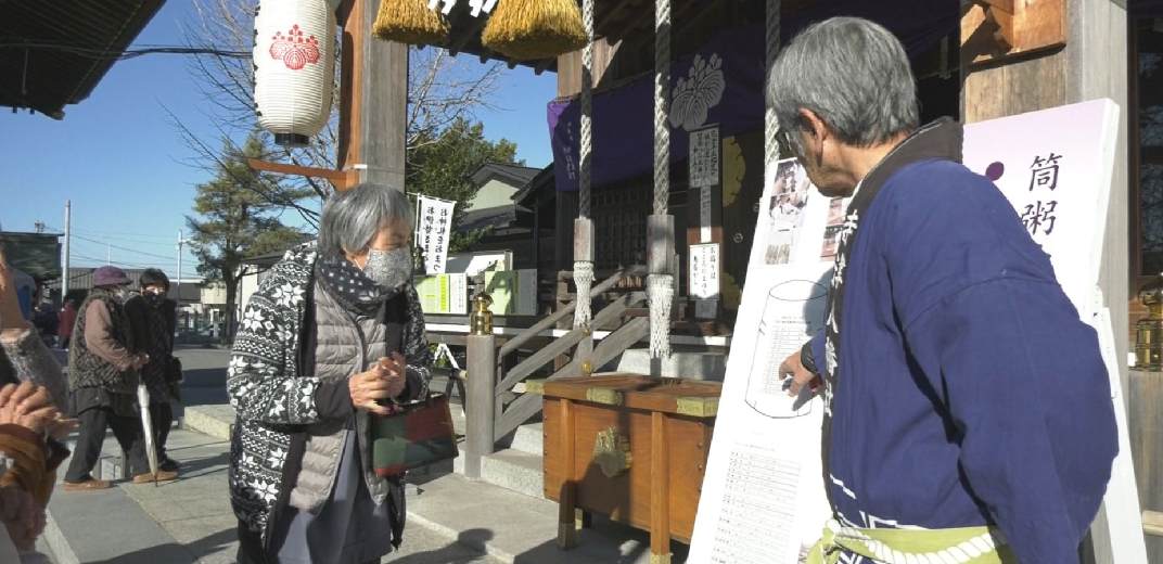 そして、境内では粥が振る舞われ、参拝者たちは、今年も健康で過ごせるよう願いながら食べていました。