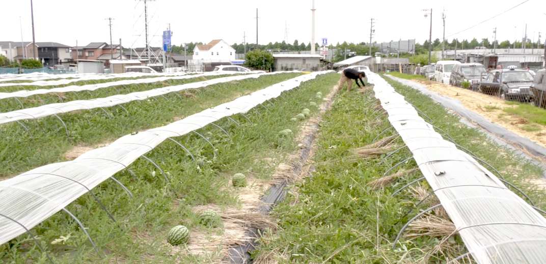 刈谷市東境町にある川上充士さんのスイカ畑です。