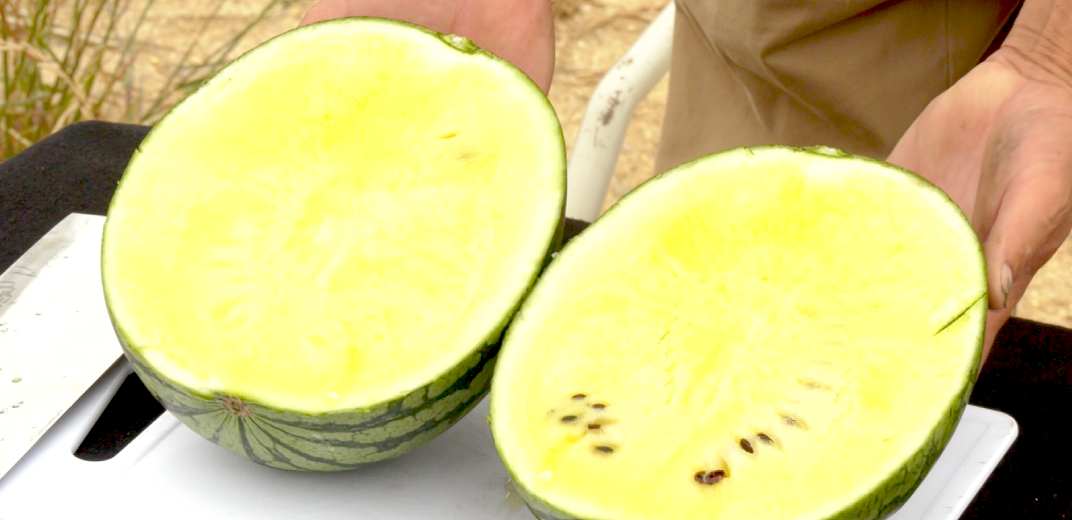 刈谷市の特産品である果肉が黄色の小玉スイカ。2024年も小玉スイカの出荷が始まっています。
