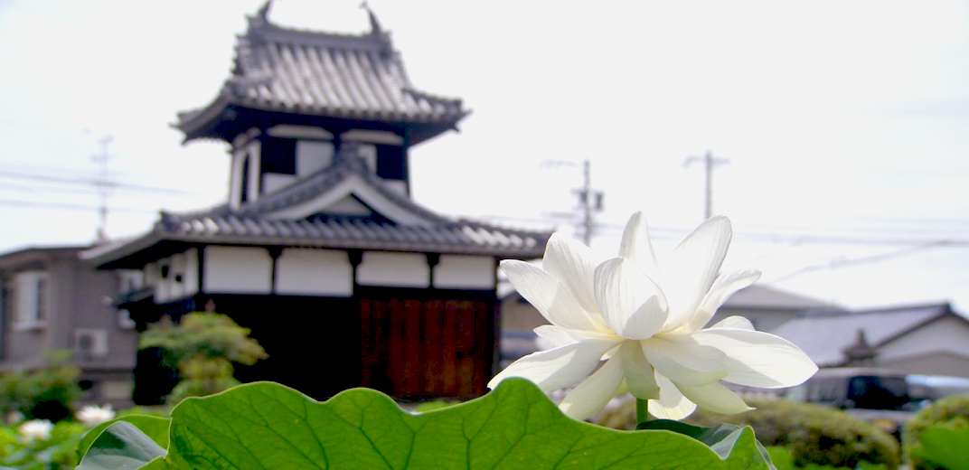 安城市野寺町にある本證寺では、白やピンクの蓮の花が、訪れる人の目を楽しませています。