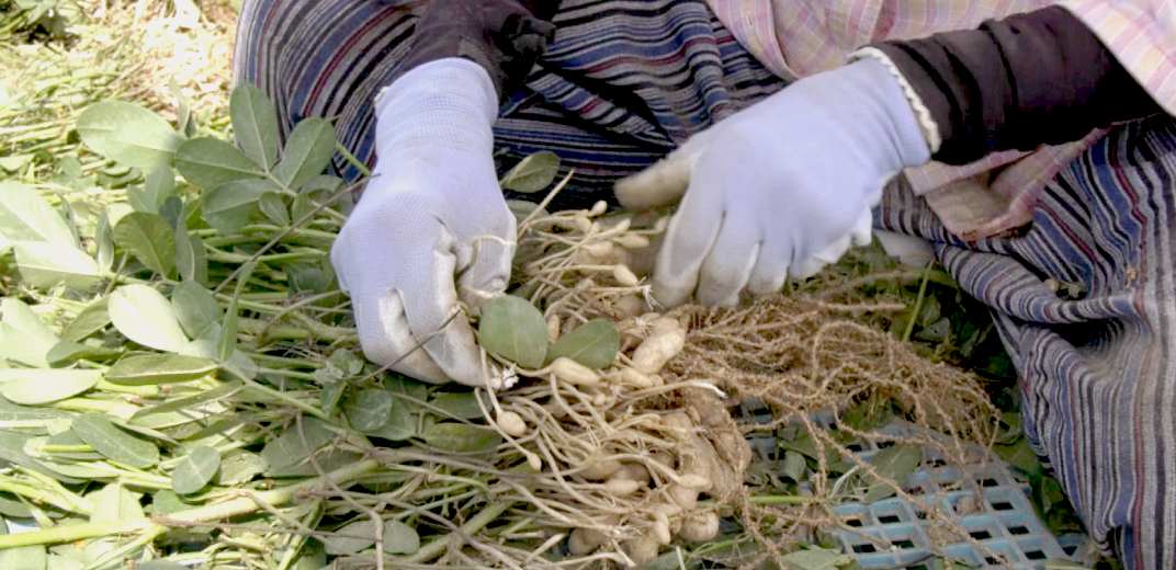 収穫された生ラッカセイは、その場で一つずつ手作業でさやの部分をとりわけます。 その後、作業場で水洗いをして土を落とし、脱水機にかけたあとパック詰めをして出荷します。