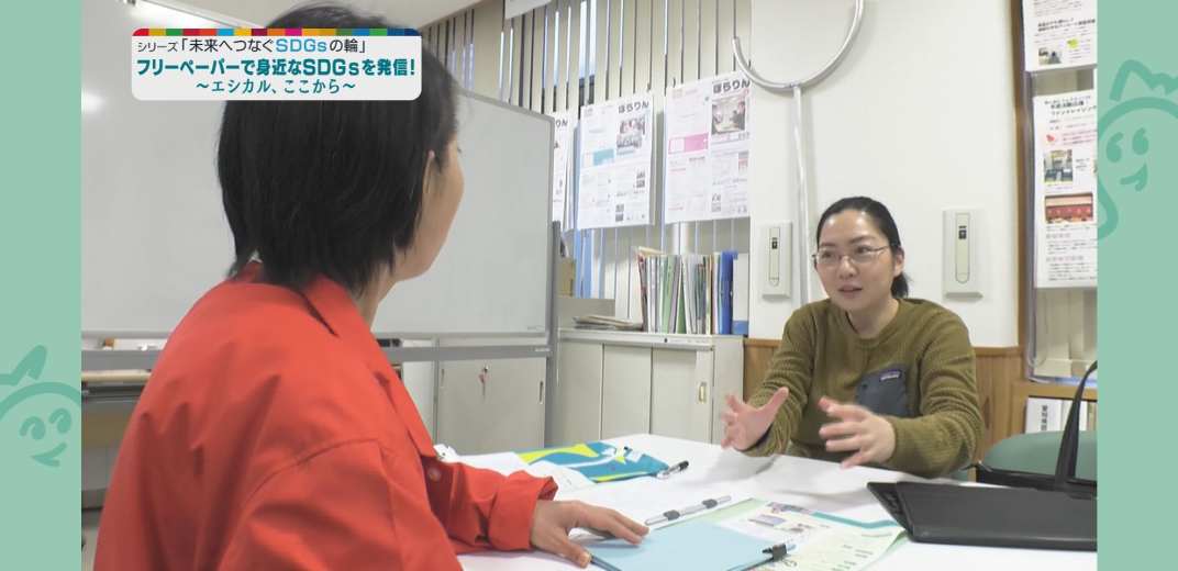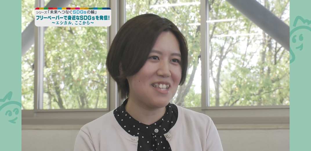 安城市企画政策課の橋本美香子さんにお話を聞きました。「SDGsについてまず知ってもらうために、啓発は重要です。エシカラさんのフリーペーパーは、デザイン性が高く子どもにもわかりやすく伝えてくださいます。このような活動をしている方が安城市内にいることは、地域としても幸せなことだと思います」