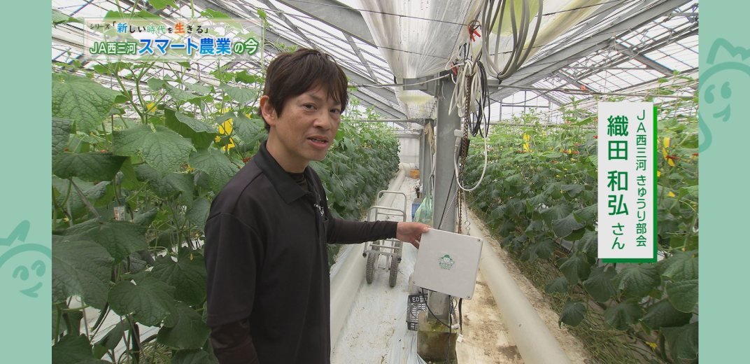 西尾市のJA西三河でも、平成26年にきゅうりのハウスで、ハウス内の環境をモニタリングする装置の導入をしたのをはじめ、これまでにさまざまな装置を導入して、農業のスマート化を進めています。