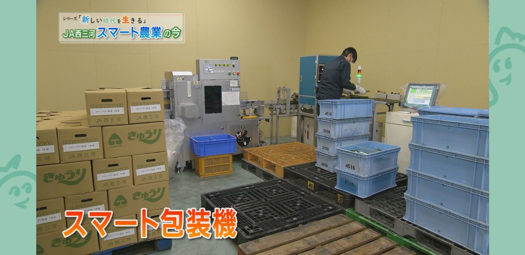 スマート農業は生産現場だけではありません。選果場で2年前から導入されているスマート包装機は、これまでより新鮮な状態できゅうりを袋詰めして出荷できる機械。きゅうりをカメラで計測し、等級や階級を決めて、指定の本数で袋詰めまで行います。