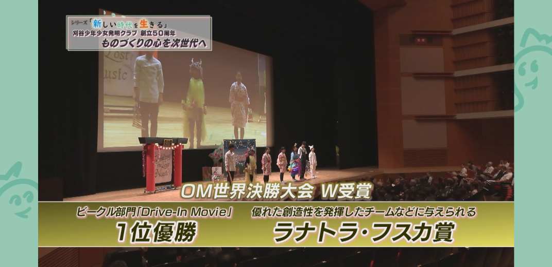 OMとは、与えられた課題に対し、いかに創造的な解決をしたかを競う大会です。刈谷少年少女発明クラブはこの大会に向けた特別訓練コースを設けていて、発想力やプレゼン力、英語力、チームで課題を解決していく力を養っています。クラブが歩んだ日々の積み重ねが、50周年の節目に花開きました。