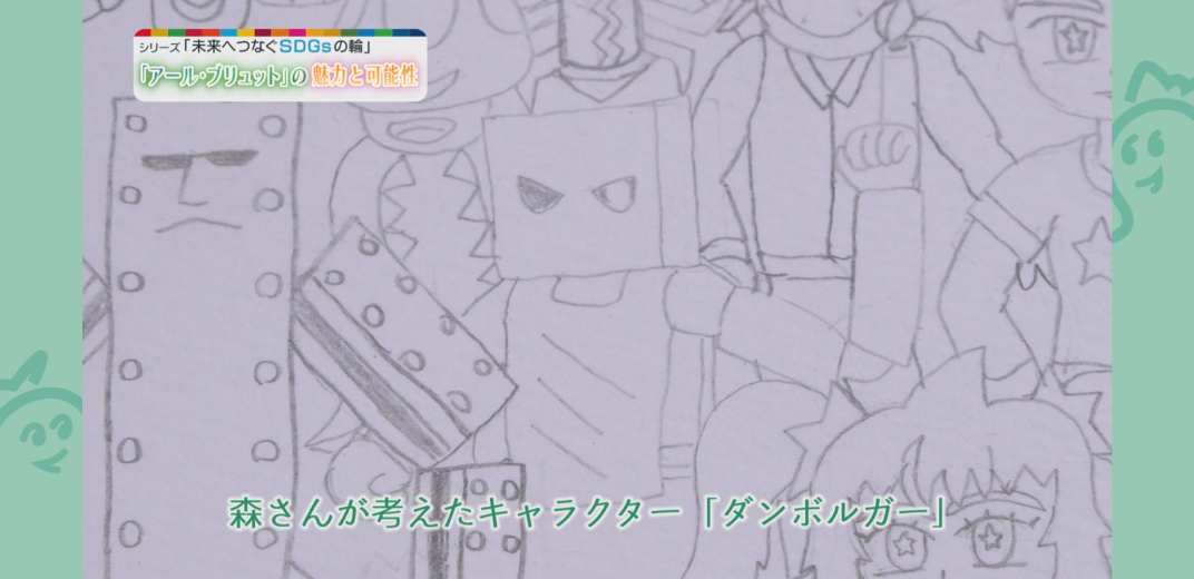 自閉スペクトラム症の森さんは、豊田市内の特別支援学校に通っています。8歳から絵を描き始め、9歳の頃に昆虫図鑑で見た蚊に興味を持ち、それからは蚊やオリジナルキャラクターの絵を描いています。例えば、森さんが考えたキャラクター「ダンボルガー」は、以前通っていた造形教室でお化け屋敷を催した際に、森さん自身が扮したダンボールのお化けから生まれました。
