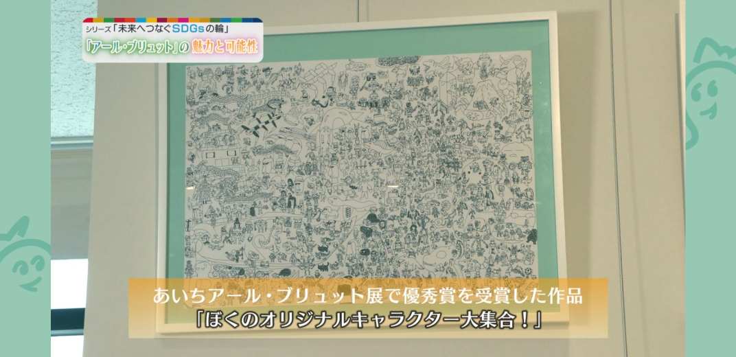 森さんは2022年に初めて、あいちアール・ブリュット展に応募しました。2014年にはじまったあいちアール・ブリュット展は、県内の障がいのある人から寄せられた作品を展示しています。また、その中から審査により選ばれた30点を紹介する「優秀作品特別展」も開催しています。森さんが出展した「ぼくのオリジナルキャラクター大集合!」が2022年度の優秀賞を受賞したのです。その時の気持ちを、「『本当に選ばれたの?』って、びっくりしたけどうれしかったです」と話してくれました。