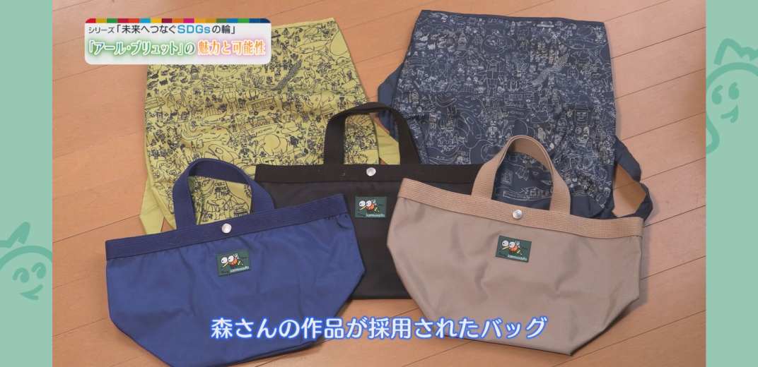 森さんの作品は、エコバッグとトートバッグのデザインやウォールアートとしても採用されています。アール・ブリュットは、様々なシーンで活用されることも増え、その可能性も広がっています。作品がいろいろなところで活用されていることに対して森さんはどう感じているのか聞いてみました。