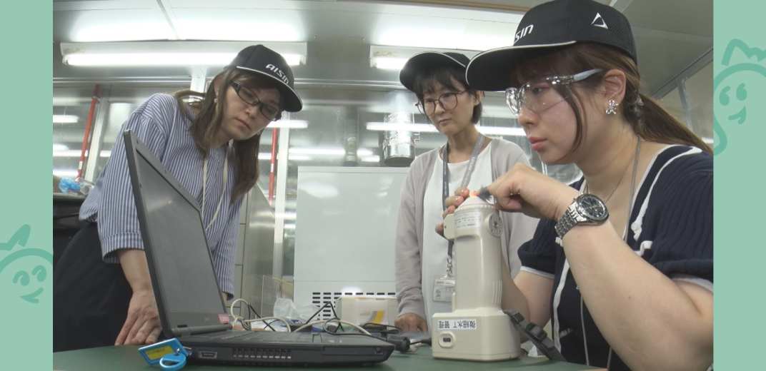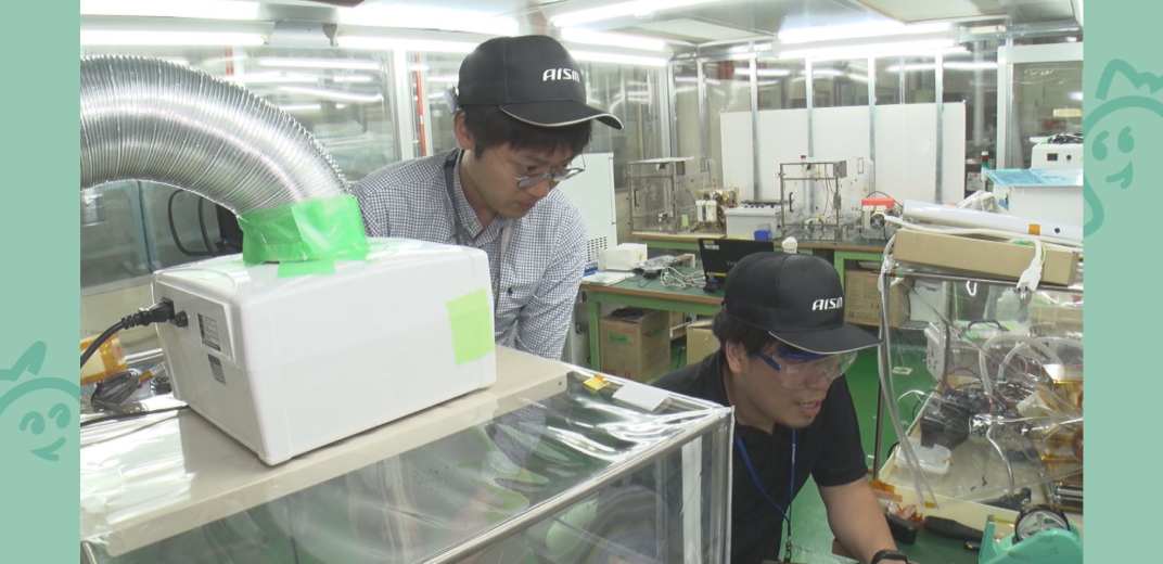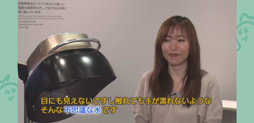 アイシン AIR事業推進部 広報担当の冨永優子さんに、世界最小の水粒子AIRを発生させる機器を紹介してもらいました。