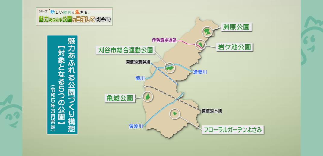 刈谷市は2023年3月、『魅力あふれる公園づくり構想』を策定しました。これは、市内5つの公園を対象に、アンケートや策定委員会などを重ね、将来構想をわかりやすくまとめたものです。