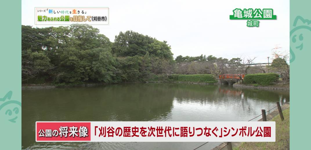 「亀城公園」は刈谷市の歴史にとって重要な場所であり、刈谷市を代表する公園であることから、『公園の将来像』を、『「刈谷の歴史を次世代に語りつなぐ」シンボル公園』としています。