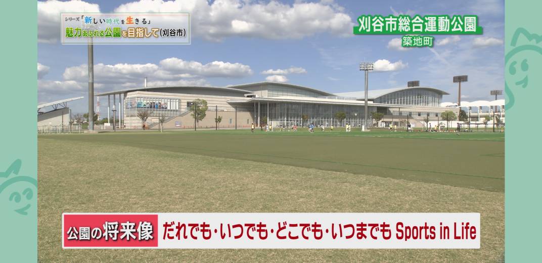 「刈谷市総合運動公園の将来像」は、「だれでも・いつでも・どこでも・いつまでも Sports in Life」、『公園の未来』は、多様な人が体を動かし楽しめることを視点に設定されています。