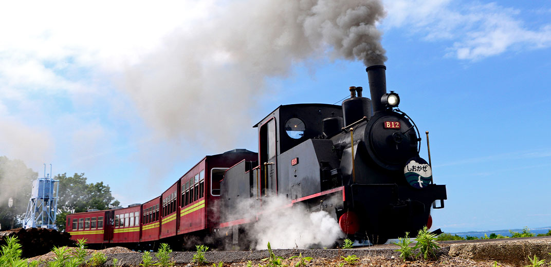 石炭と水蒸気の力だけで走る本物の「蒸気機関車」の力強い走りは一見の価値あり!