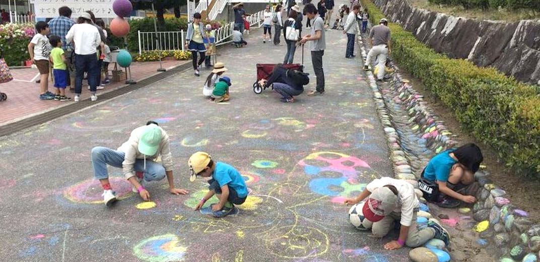 いつもなら怒られちゃう!?チョークを使ってアスファルトに自由に絵を描くことができちゃいます!
