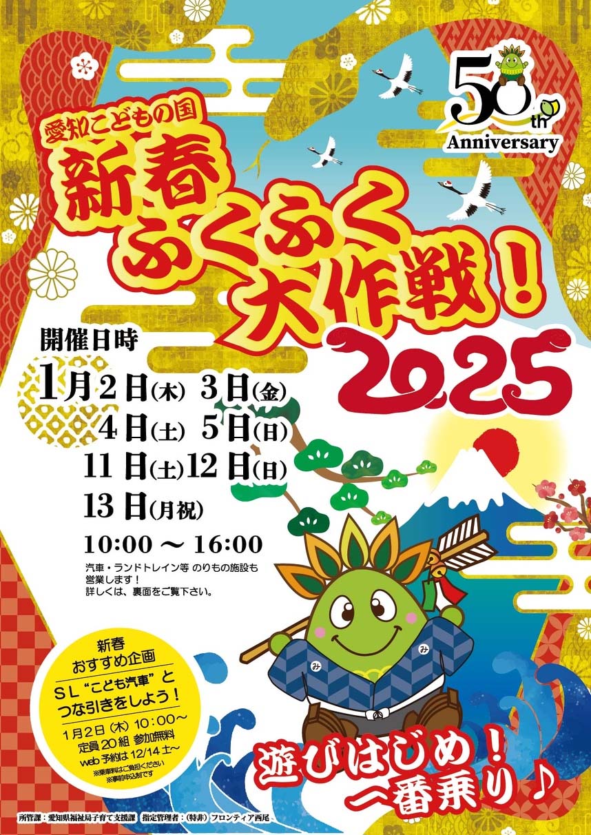 西尾市のこどもの国で開催される「新春ふくふく大作戦!」。1月2日(木)~5日(日)、11日(土)~13日(月祝)の2回にわかれて開催。