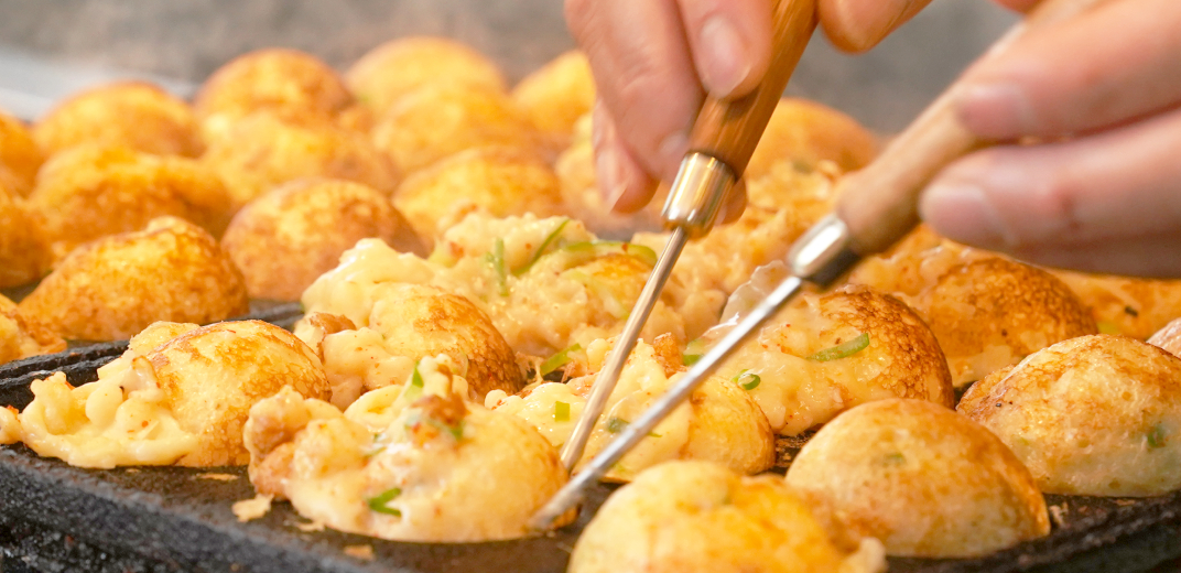 たこ焼の味付けはしょうゆ、しょうゆマヨ、ソース、ソースマヨ、ぼうず(何もかけないたこ焼)の5種類。注文してから作ってくれるので、急いでいる場合は事前予約を。