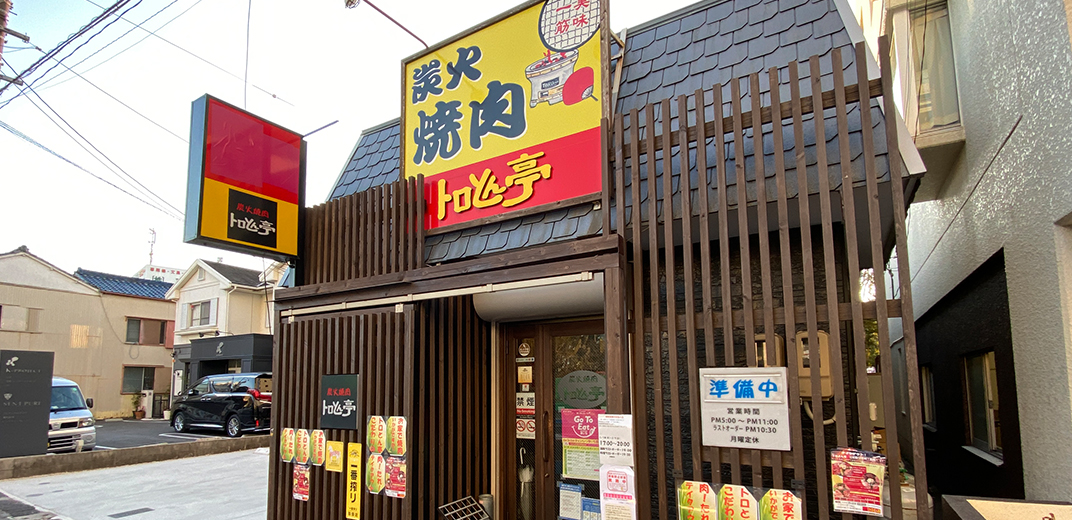 色と赤の看板が目印「炭火焼肉 トロとん亭(刈谷市)」