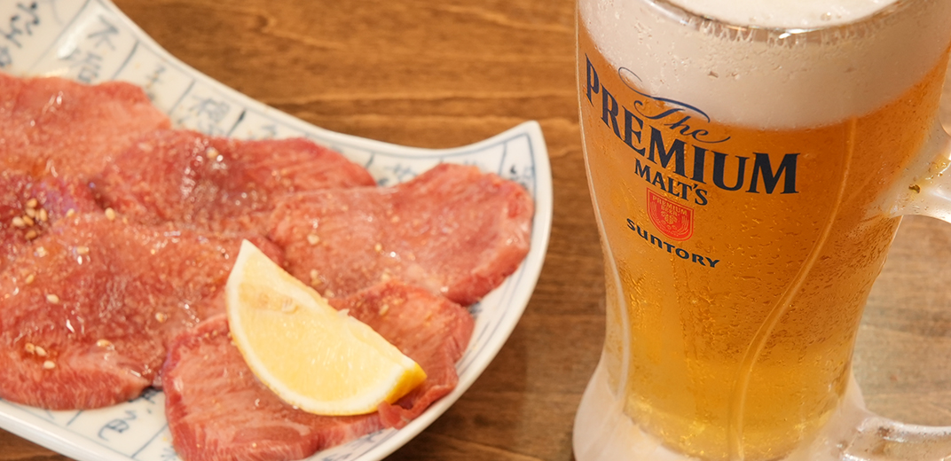 名鉄・新安城駅の南口から徒歩1分!お店の一番人気「生塩タン」(1430円・税込/1人前)は、一度も凍らせずに提供されるため、とってもジューシー。しかも分厚い!ビールとの相性抜群です。