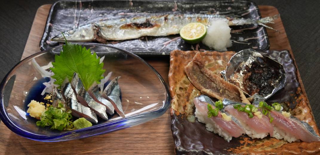 1本のサンマの半分を塩焼きに、もう半分を刺身や握り寿司、そして骨せんべいまで!大将が考案した、サンマ好きにはたまらない欲張りメニューです。