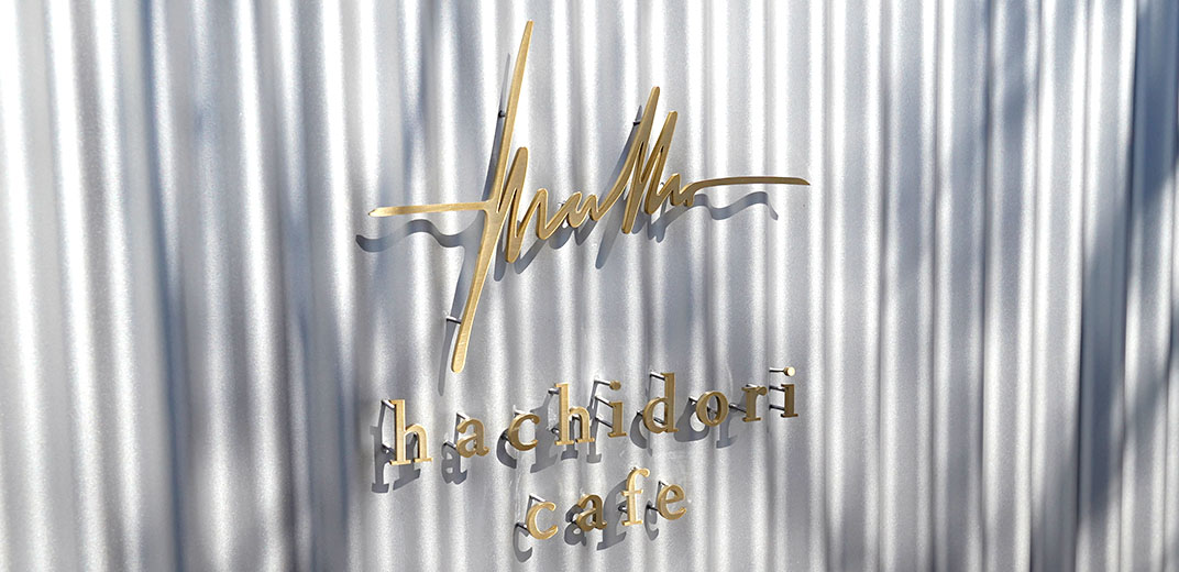お店の入り口は、店舗に向かって右側の大きなガラスの引き戸。「どこから入るのかな?」と一瞬迷ってしまいそうですが、植木の裏にひっそりとたたずむ「hachidori cafe」のロゴが目印です。