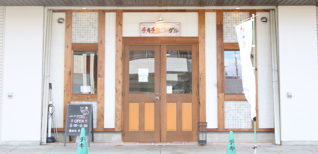 JR東海道本線「安城」駅から徒歩約8分。市営住宅の1階にあるのが「チキチキベーグル」です。ナチュラルなウッドテイストの外観と、うきうきしてしまうようなカラフルな看板が目印!駐車場は店舗前に2台用意されています。駅や公園、児童館などからも近いので、通勤・通学途中や遊び帰りの家族連れも通いやすいですね。