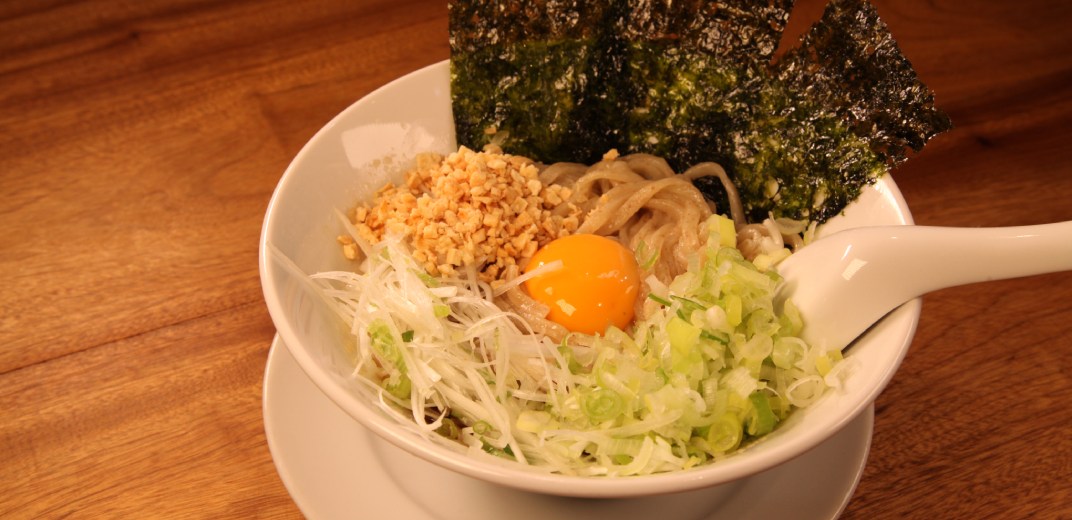 まずは太麺をゆでる事4分。茹で上がったら自家製のツユの素に生ニンニク、焦がしニンニクを入れて混ぜ、トッピングに卵・ネギ・韓国のり、さらにフライドガーリックを乗せて完成。さあスタミナ満点「BLACK TKM」を召し上がれ!