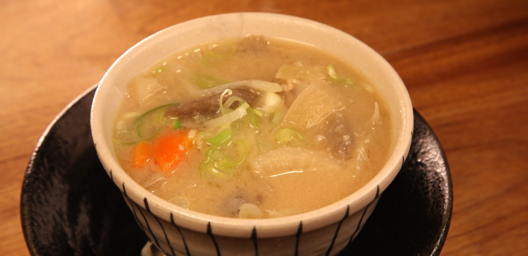 オススメのお料理3品目は、「豚汁」(550円・税込)。炒めた野菜に酒とみりんを入れて蒸し、豚肉と合わせて出汁を入れて煮て、最後に味噌を加えたら自慢の豚汁の完成です。