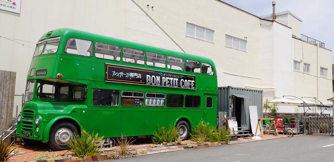 車でお店に行く方は、道路を挟んだ向かいの駐車場にある「緑のロンドンバス」と表記されたスペースと、すぐ近くの市営駐車場を無料で利用OK!